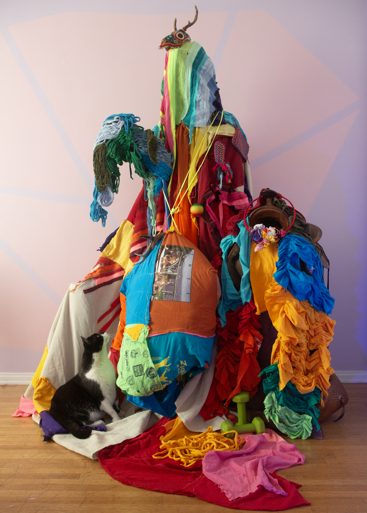 “I would wake up in the morning, my son would leave for school, and I put a dress form in his room.” She started to pile on the dress form, things evolved organically, and the creatures emerged—as the Talmasque series.